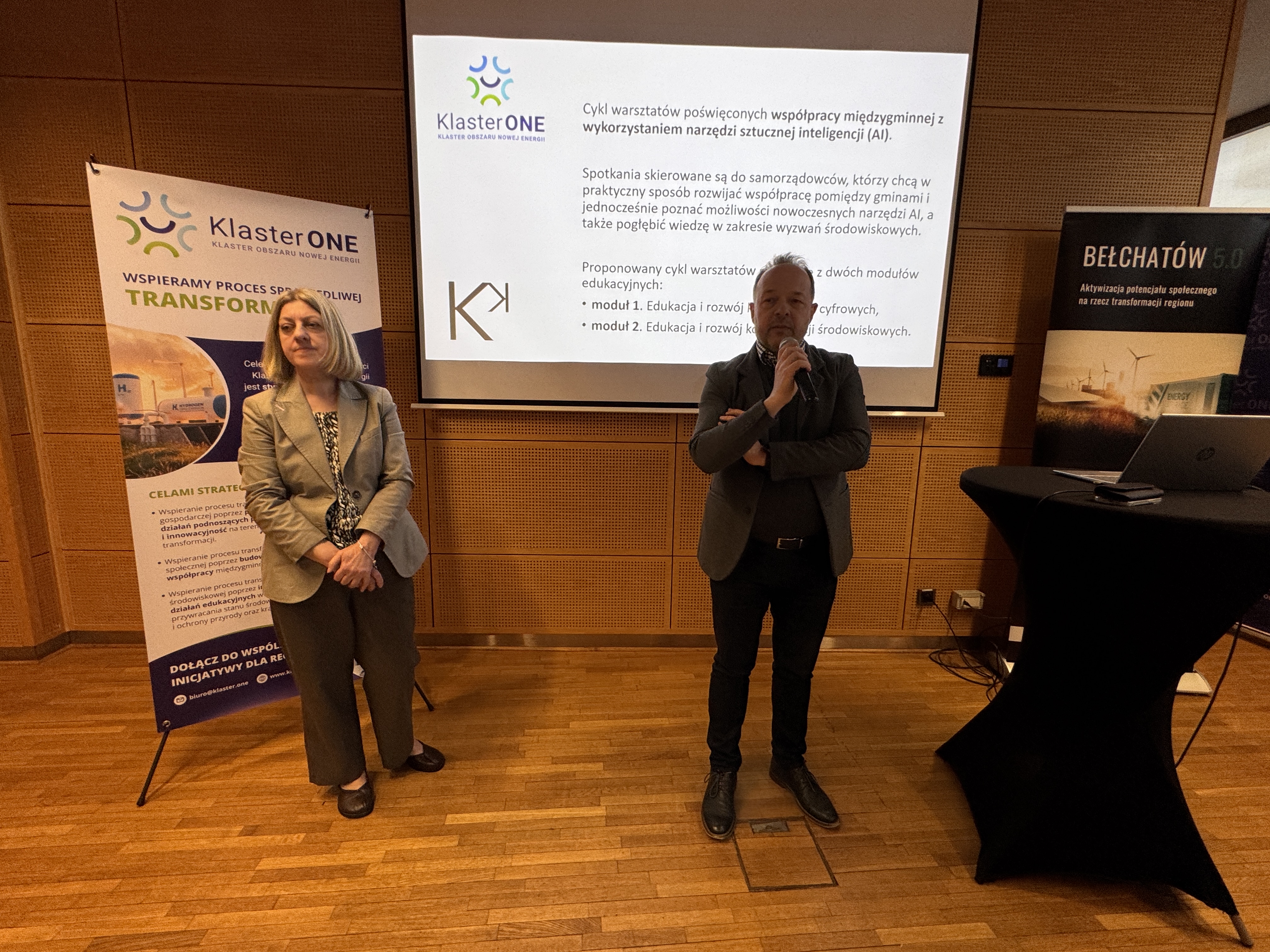 – Projekt ma na celu wzmocnienie liderstwa, ja to nazywam w skrócie „gmin wokół odkrywki” – powiatu bełchatowskiego, radomszczańskiego, pajęczańskiego, po to by rzeczywiście na zaplanowanych sześciu warsztatach zacząć pracować na narzędziach sztucznej inteligencji – celem nauczenia się korzystania z nich w aspektach strategicznych i analitycznych. Kleszczów jest sercem naszej transformacji, staramy się właśnie by z środka promieniowała energia na zewnątrz – mówi Maciej Kozakiewicz prezes Klastra Obszaru Nowej Energii.